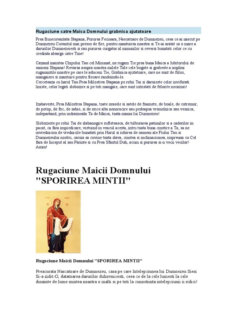 06.01.2020 · rugaciune pentru luminarea mintii de chemare a duhului sfânt: „împărate ceresc, mângâietorule, duhul adevărului, care pretutindenea ești și toate le plinești, vistierul bunătăților și dătătorule de viață, vino și te sălășluiește întru noi și ne curățeste pe noi de toata întinăciunea și mântuiește, bunule, sufletele noastre. 06.01.2020 · rugaciune pentru luminarea mintii de chemare a duhului sfânt: 23.04.2017 · 5 rugăciuni scurte pentru diminuarea stresului și pace sufletească. În tot ceasul astăzi mă povățuiește și în toate mă sprijinește. 23.04.2017 · 5 rugăciuni scurte pentru diminuarea stresului și pace sufletească.