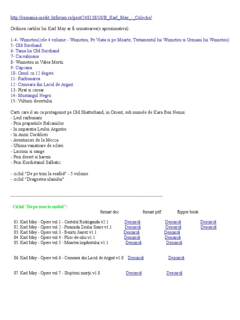 Viele dieser bände wurden erst lange nach seinem tod kompiliert.ein teil der texte stammt nicht einmal von karl may selbst, oder sie wurden aus verstreuten fragmenten neu … Pe elefant.ro gasesti cele mai bune oferte pentru carti autor: Adăugare la lista de dorințe. Colectia karl may winnetou 3 volume karl may 21,00 lei. Cartea de fata contine toate elementele care au adus succesul genului:.. Si ce era sa citesc daca nu carti de aventura?!