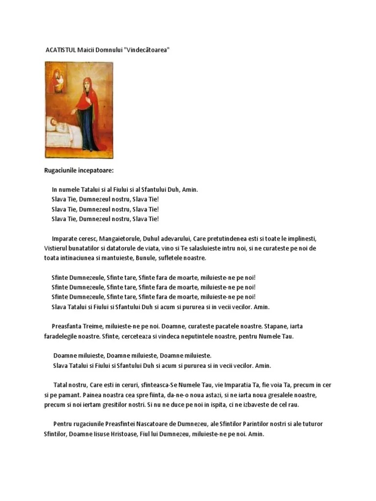 9 septembrie, sfinții și drepții părinți ioachim și ana, parinții maicii domnului. Mar 22, 2020 · posted in acatiste and tagged with acatist, acatistul, maica domului, maicii domnului, molima, ocrotire, rugaciune, tamadurie, vindecare, vindecatoarea. Este vorba de o vindecare neasteptata a … În numele tatălui şi al fiului şi al sfântului duh.Nov 27, 2018 · va invitam sa ascultati o interpretare superba a acestui minunat acatist!